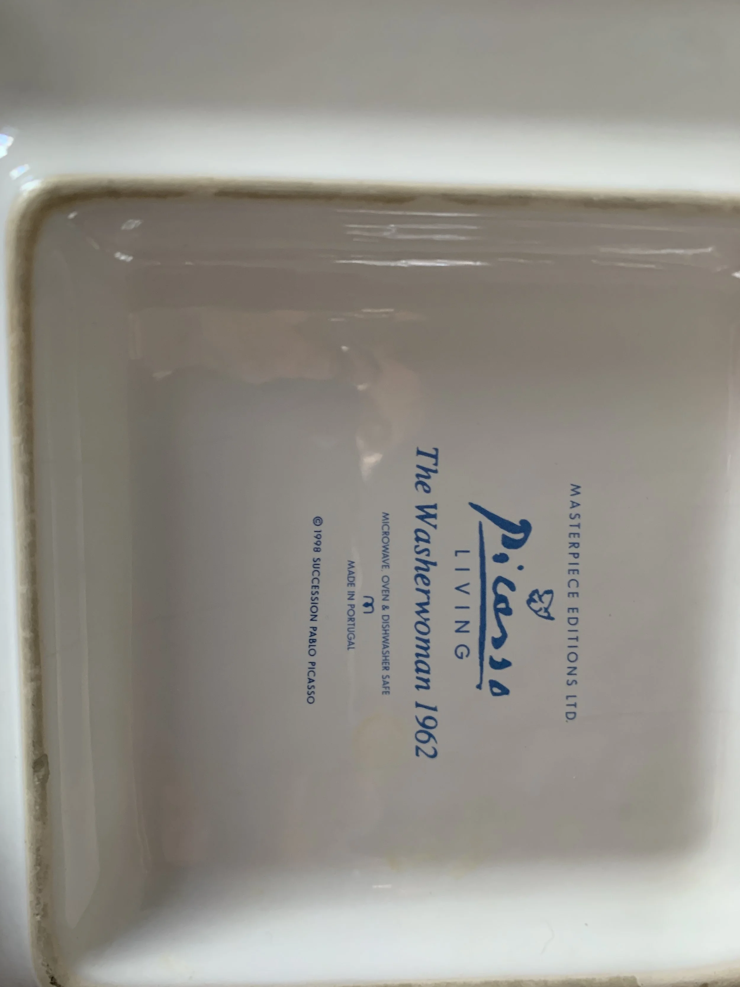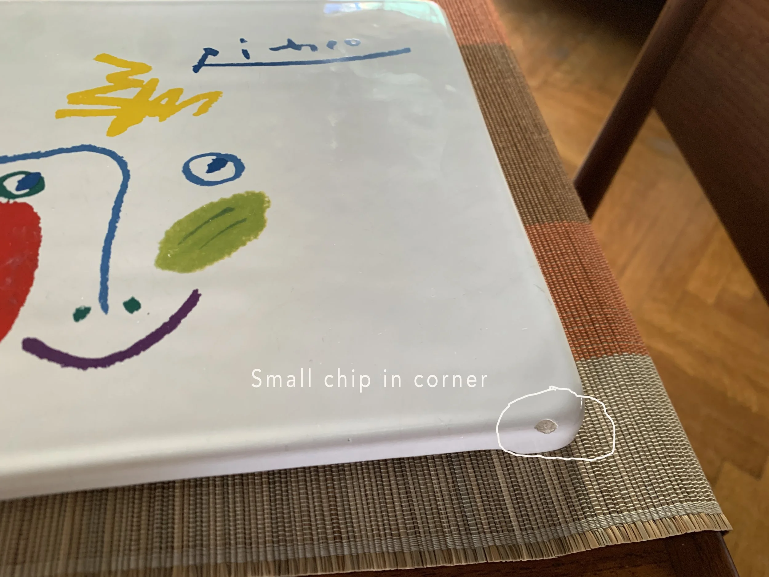 One minor chip found on a corner of the square platter (noted in picture below).